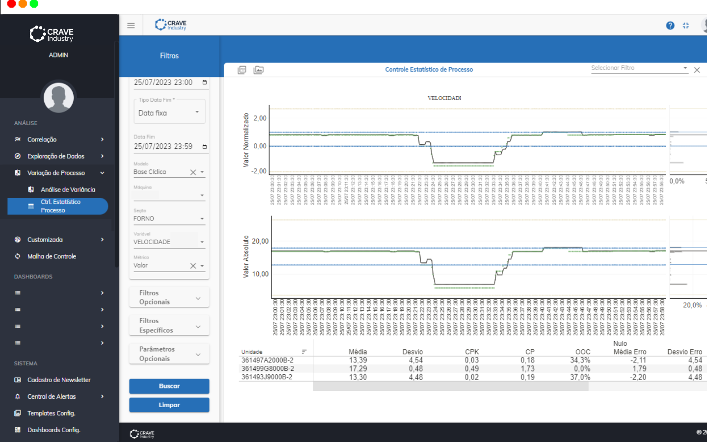 É importante lembrar que os dados dos parâmetros monitorados na ferramenta CEP são construídos nos dados modelados pela AI Data Platform da Crave Platform.
