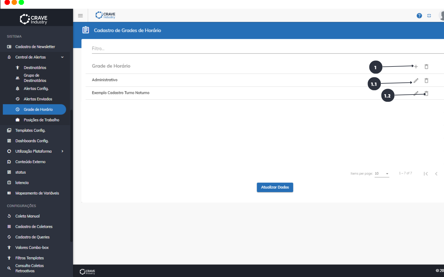 É o recurso que permite ao usuário, cadastrar novas grades de horários e combina-las à perfis, processos, ou demais variáveis como filtro às ferramentas da plataforma. Respeitando sua necessidade à informação e facilitando a distribuição de interpretação de análises entra áreas, turnos e equipes.
