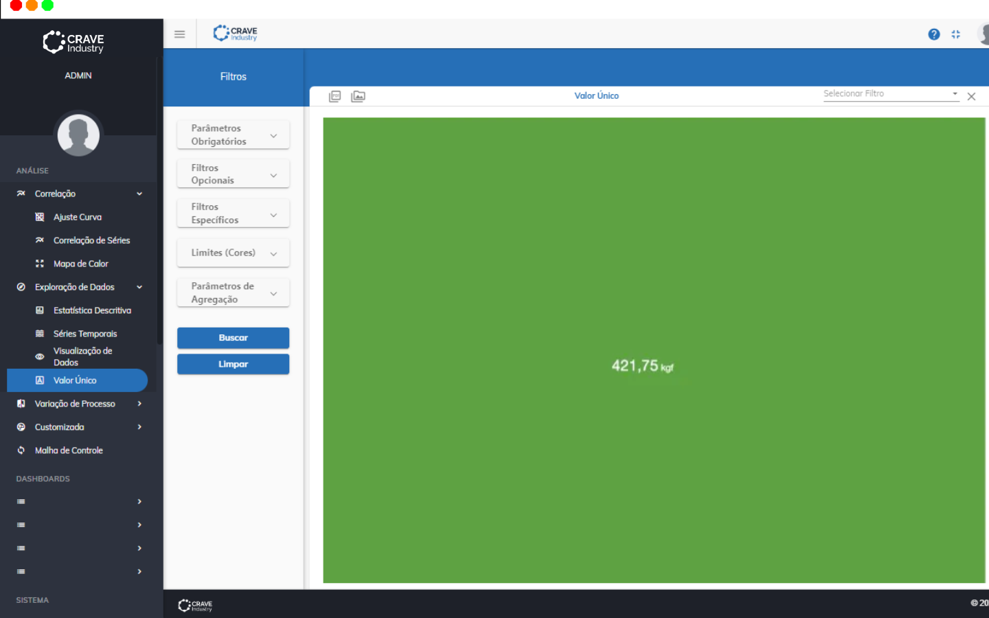 - Agregação: você pode definir a agregação que deseja visualizar. As opções dependem do modelo de dados e da(s) máquina(s) selecionado(s). Por exemplo, o modelo Base Unidade inclui alguns padrões média, desvio padrão, máximo e mínimo.