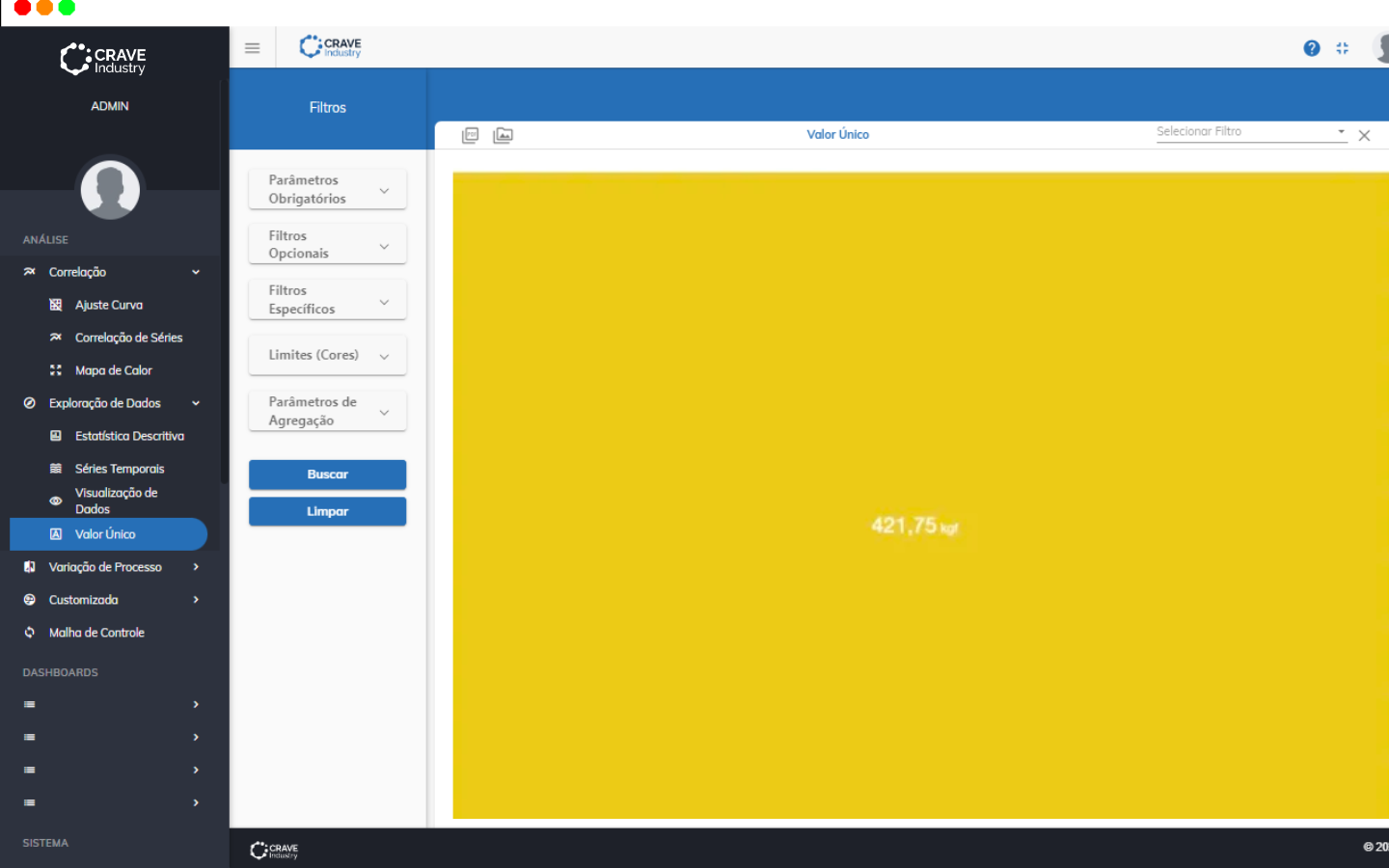 - Métrica: você pode selecionar a medida que deseja visualizar. As opções dependem do modelo de dados e da(s) máquina(s) selecionado(s). Por exemplo, o modelo Base Unidade inclui alguns padrões média, desvio padrão, máximo e mínimo.