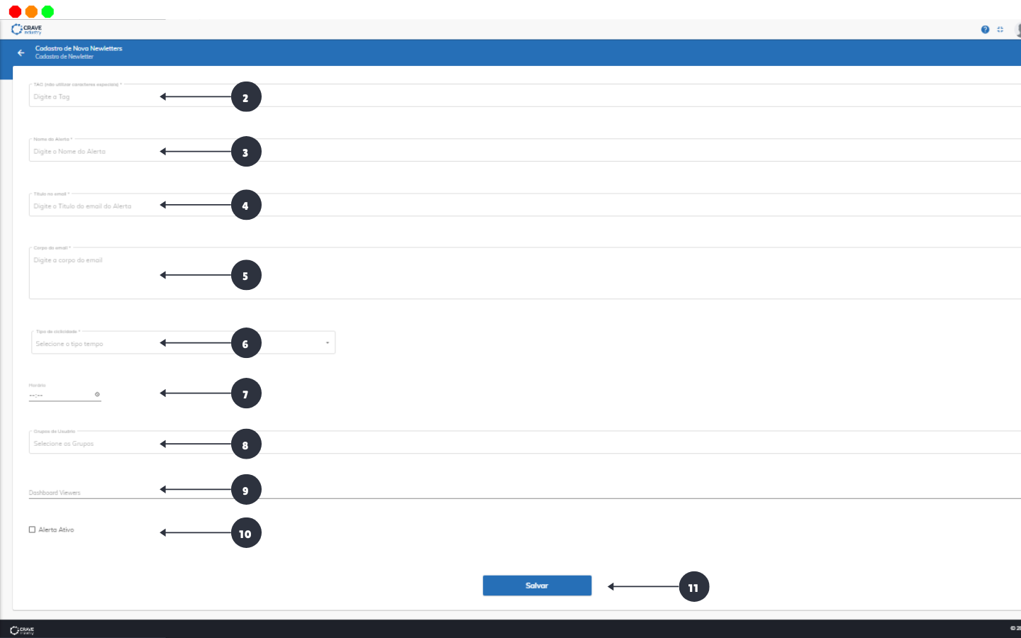 - Salvar: para salvar configurações da Newsletter.